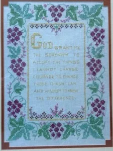 I gave my Mother a cross stitch of the Serenity Prayer for Christmas in 1982. I remember experiencing pride and humility as she received my gift, especially as it had taken me over 8 years to finish! Six years later I embarked on a new personal relationship with it's powerful guidance.